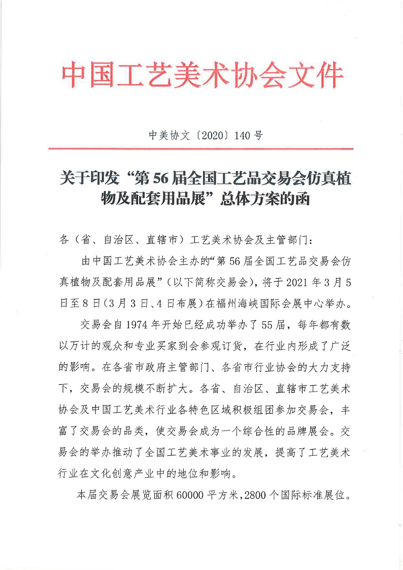 关于印发“第56届全国工艺品交易会仿真植物及配套用品展”总体方案的函
